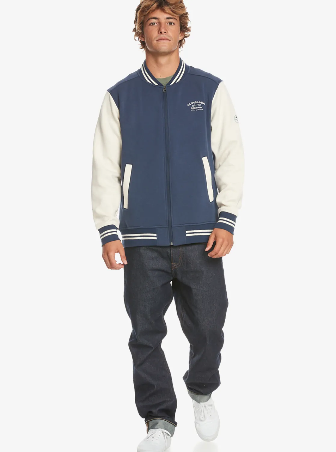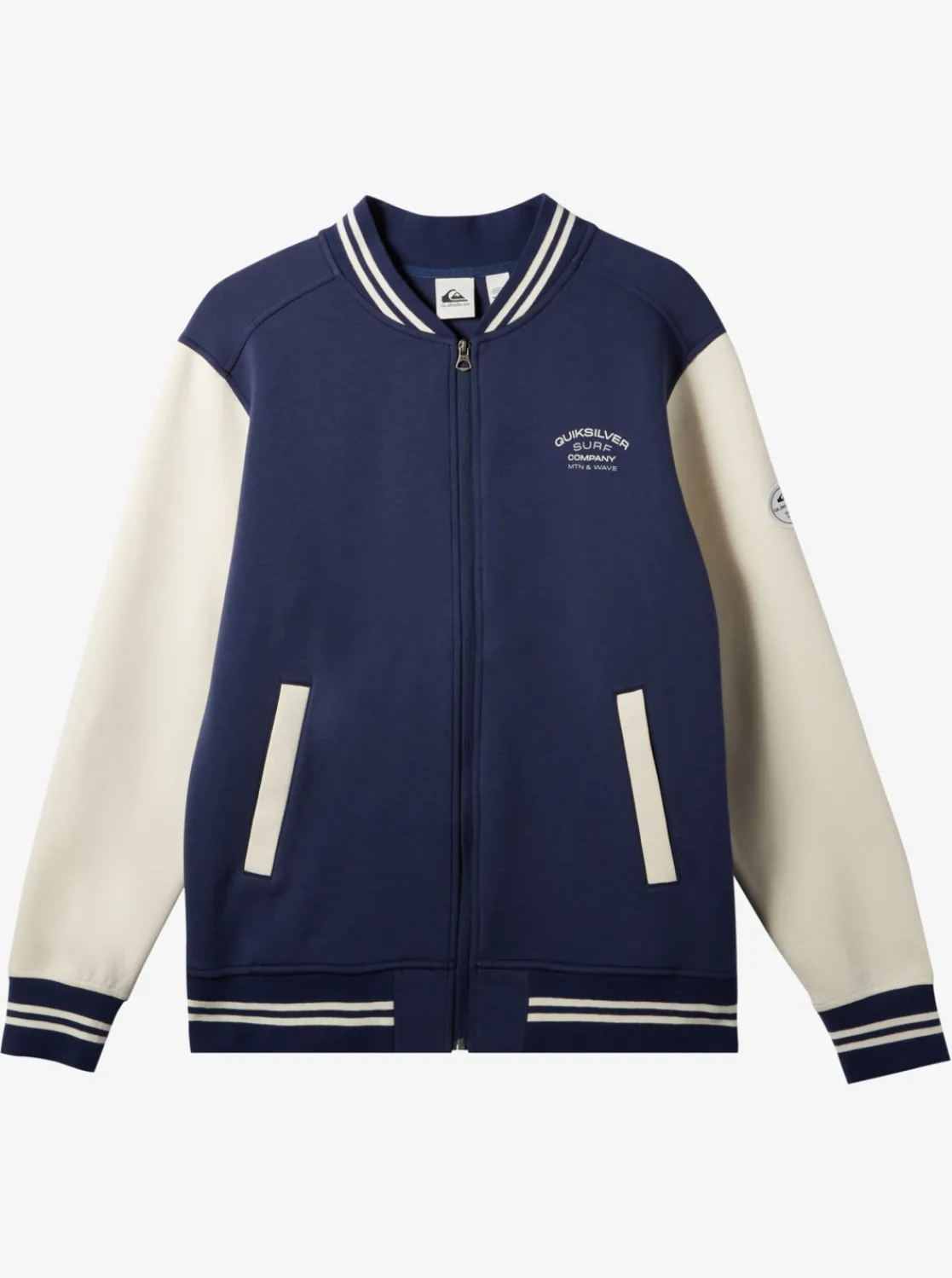 Channeling Vintage Letterman Style With Contrasting Sleeves And Ribbed Cuffed, Our Quiksilver Bomber Zip-Up Fleece Has A Classic Fit With A Full Zip Closure, Welt Pockets, And Branding Detail At The Back. Made From A Recycled Cotton-Polyester Blend, This Timeless Piece Is A Staple In Your Year-Round Rotation.