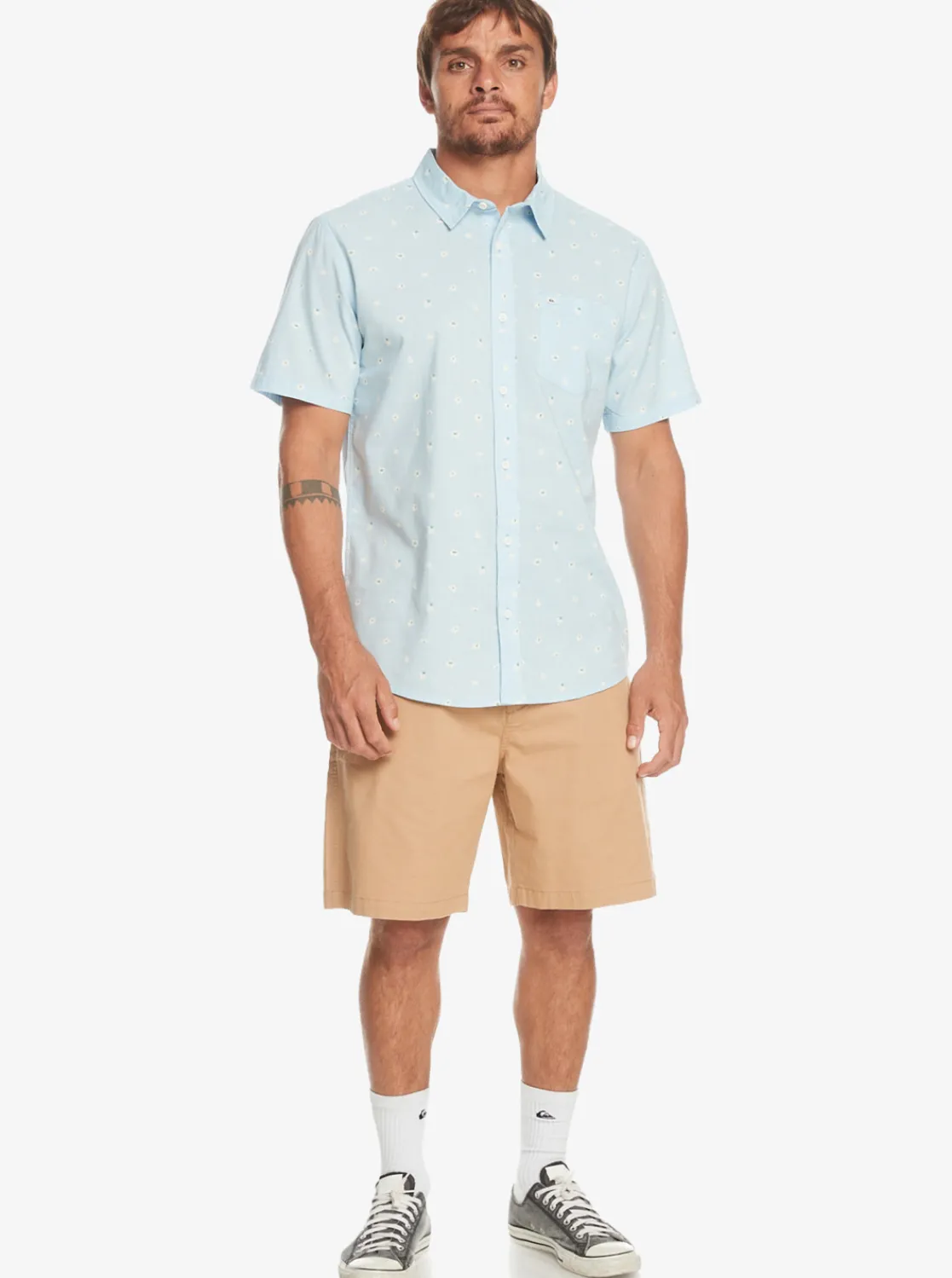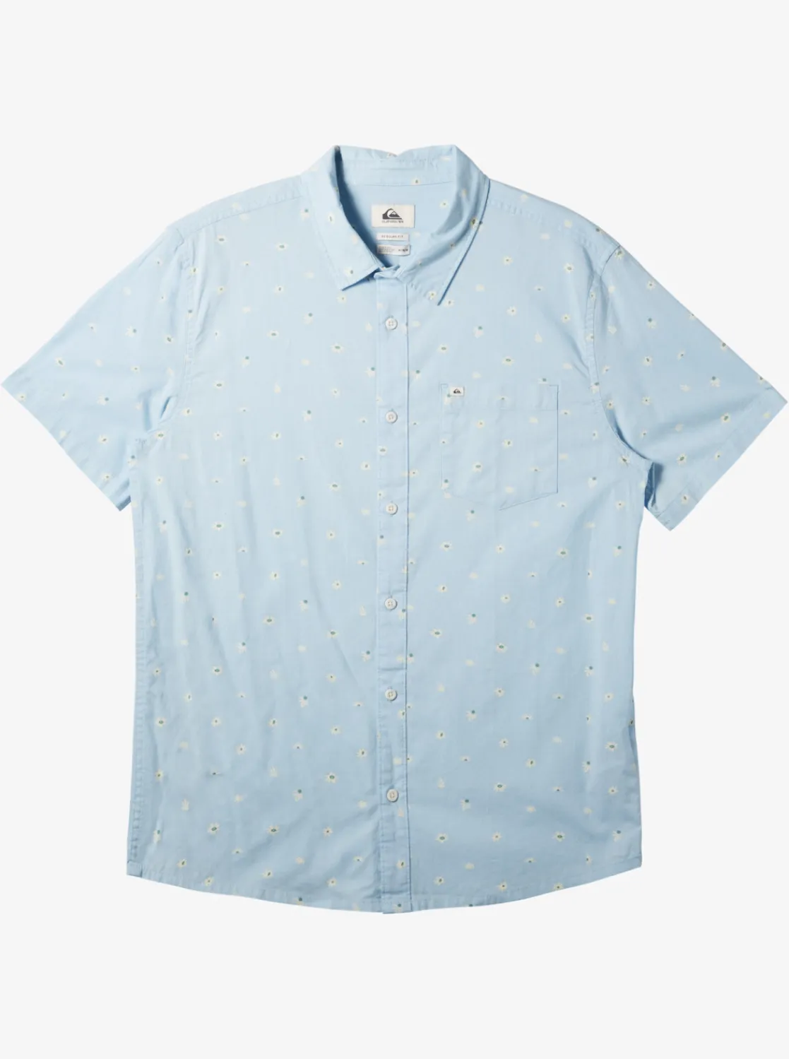 Embrace The Summer Season With Our Quiksilver Minimo Short Sleeve Shirt: Lightweight, Garment-Washed Cotton Poplin Fabric, A Regular Fit, Chest Pocket, Curved Hem, And Buttons Down The Front. Show Off Your Style With Its Seasonal Mini Motif Print And Recycled Quiksilver Labeling.