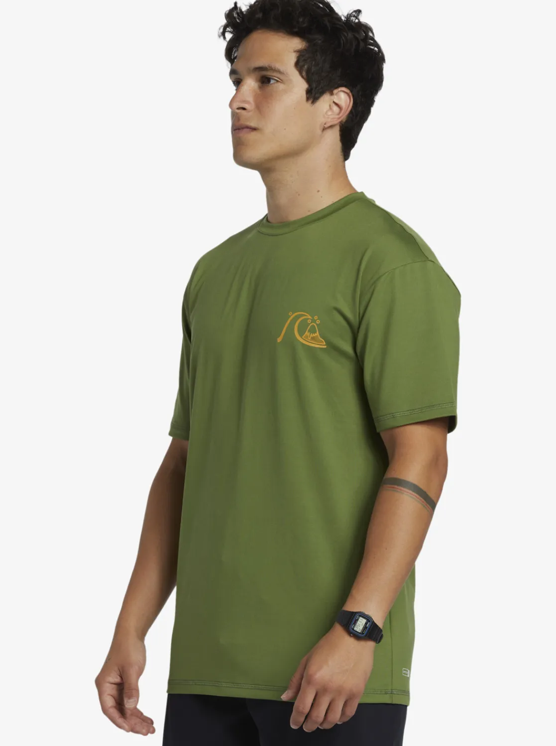 The Mix Session Rashguard Top From Quiksilver: Eco-Conscious Fabric, Superior Sun Protection, Chlorine Resistance, And Moisture-Wicking Comfort. Plus, This Loose-Fit Surf Tee Is Made Of Recycled Cotton-Feel Material That Won’T Stretch Out Over Time.