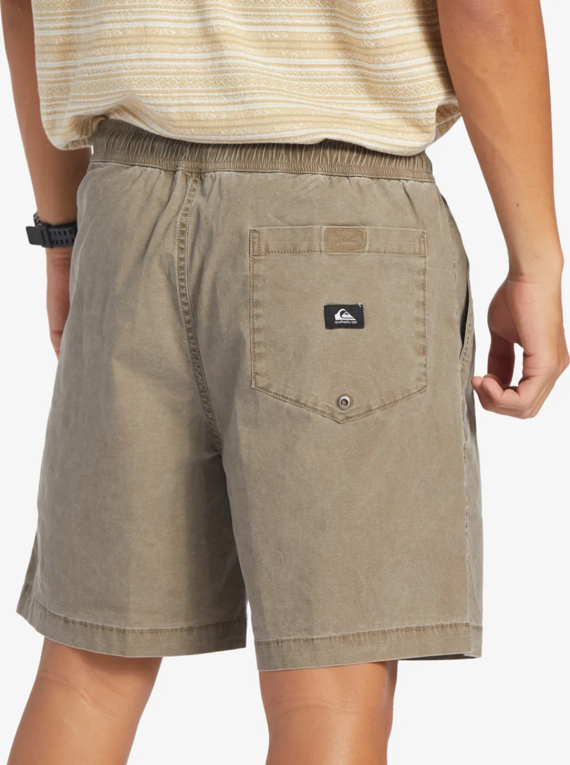 Our Quiksilver Taxer Elasticized Shorts Offer A Volley Fit, 18″ Outseam, Fixed Waistband And Fake Fly Closure For All Your Summer Sports Needs. Crafted From A Cotton Elastane Blend Fabric [200 G/M2] With Acid Wash Finish, Side Pockets And Back Pockets With Quiksilver Branding.