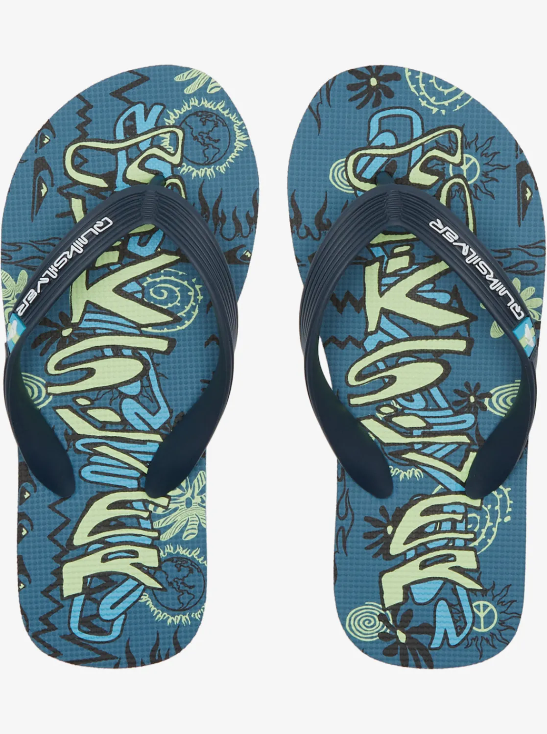 Quiksilver Boy’S 8-16 Molokai Flip-Flops Black/Green/Blue New