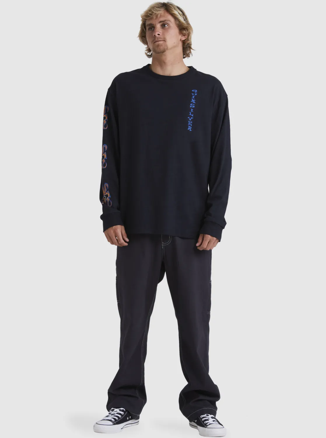 Part Of The Quiksilver X Surfers Of Fortune Collection, The Trident Long-Sleeve Tee Features Custom Artwork On The Left Chest And Side Sleeve. Made Of Pure Cotton Fabric With A Quality Feel, It Offers An Oversized Fit For Comfort And A Contemporary Look.